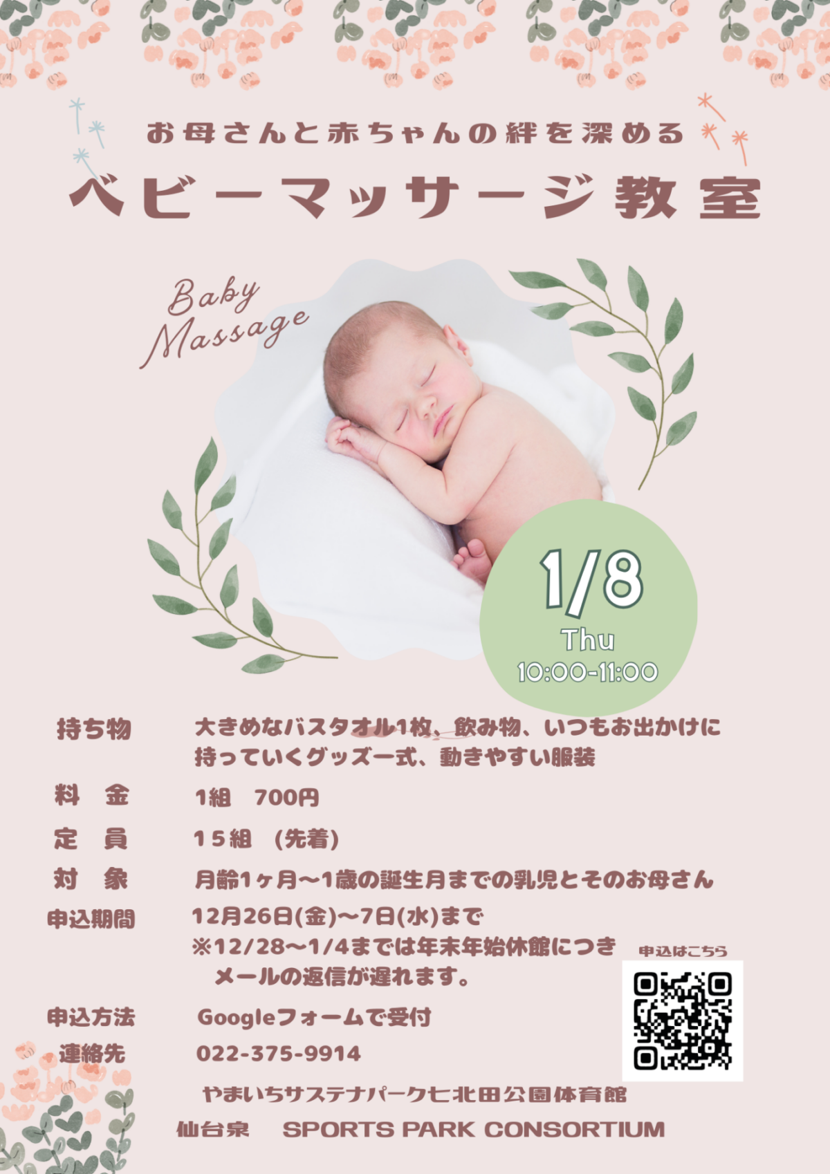 1月8日(木)10時~ ベビーマッサージ教室を開催致します!