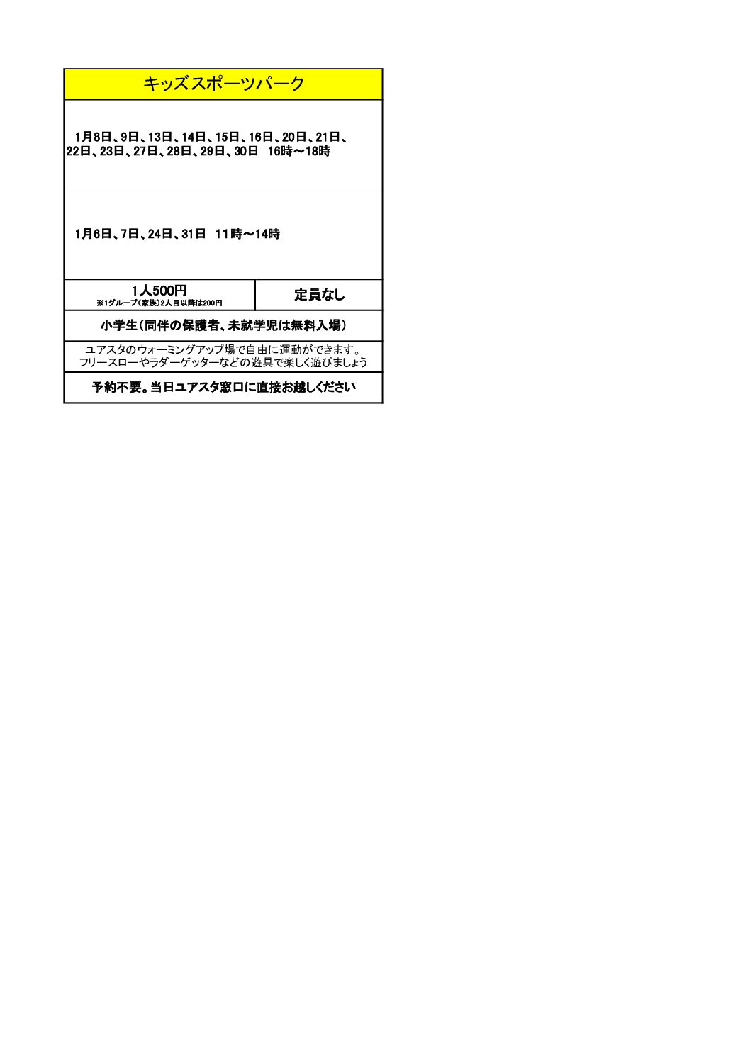 1月6日、7日、24日、31日 11時~14時