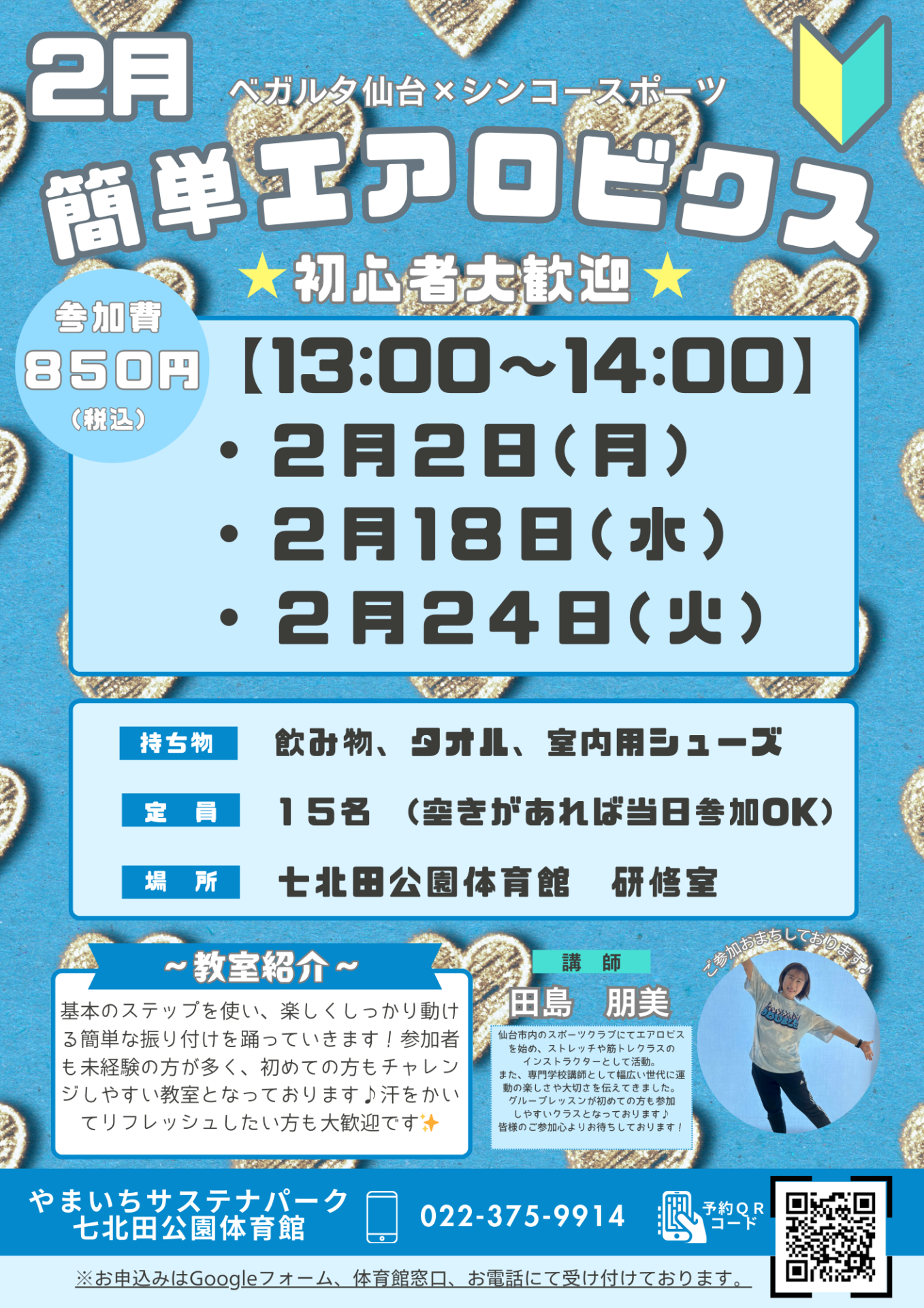 申し込み方法:Googleフォーム、体育館窓口、またはお電話での受け付けとなります。