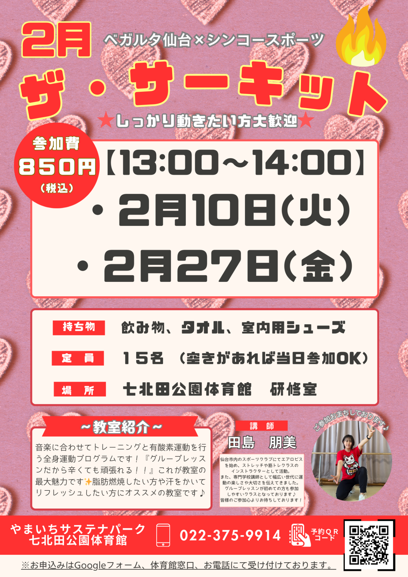 申し込み方法:Googleフォーム、体育館窓口、またはお電話での受け付けとなります。