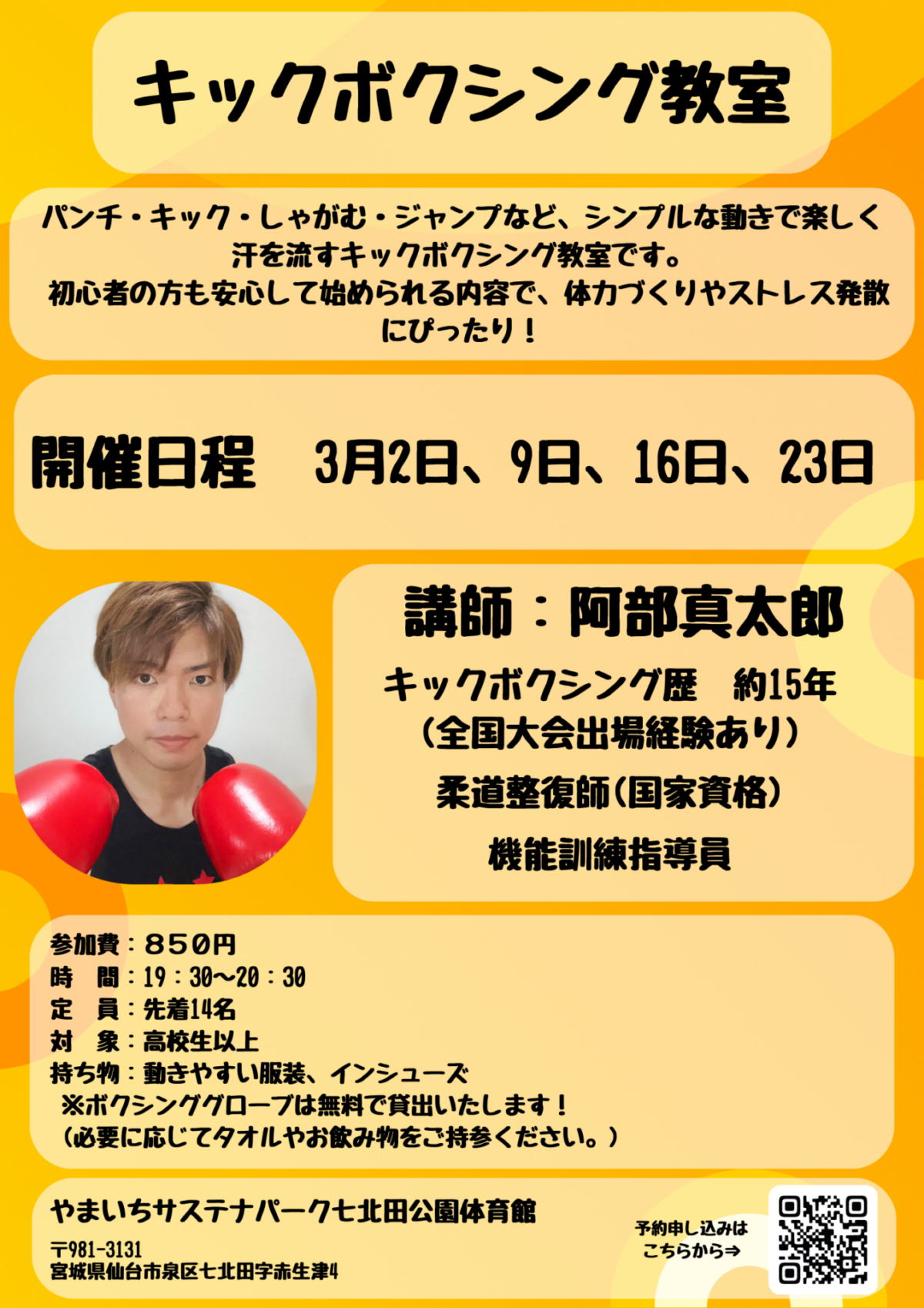 持ち物:動きやすい服装、必要に応じてタオルやお飲み物