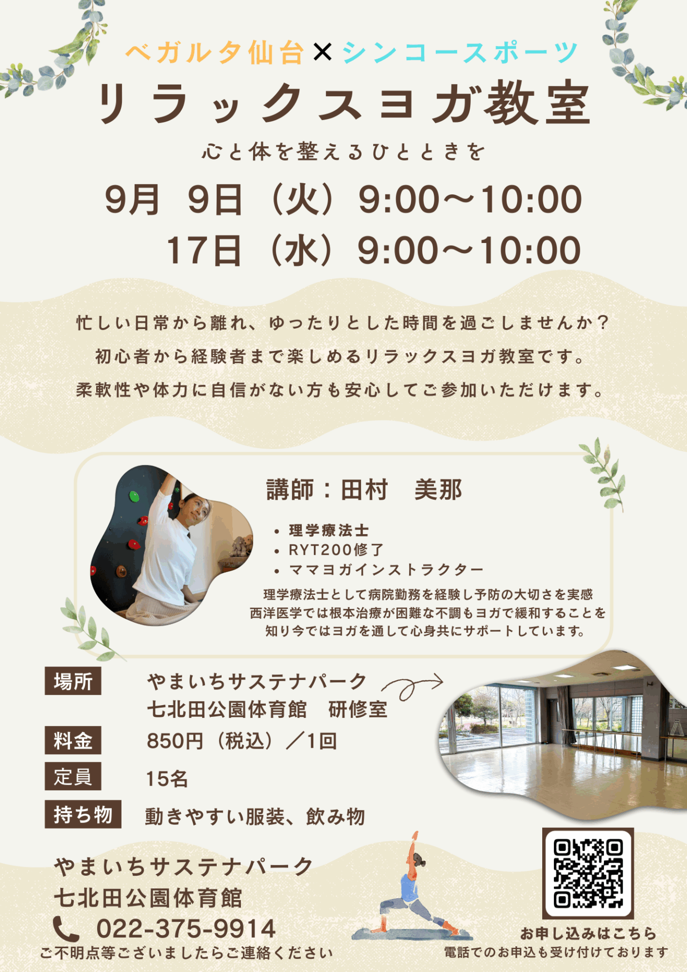 やまいちサステナパーク七北田公園体育館 研修室にて開催いたします!!!