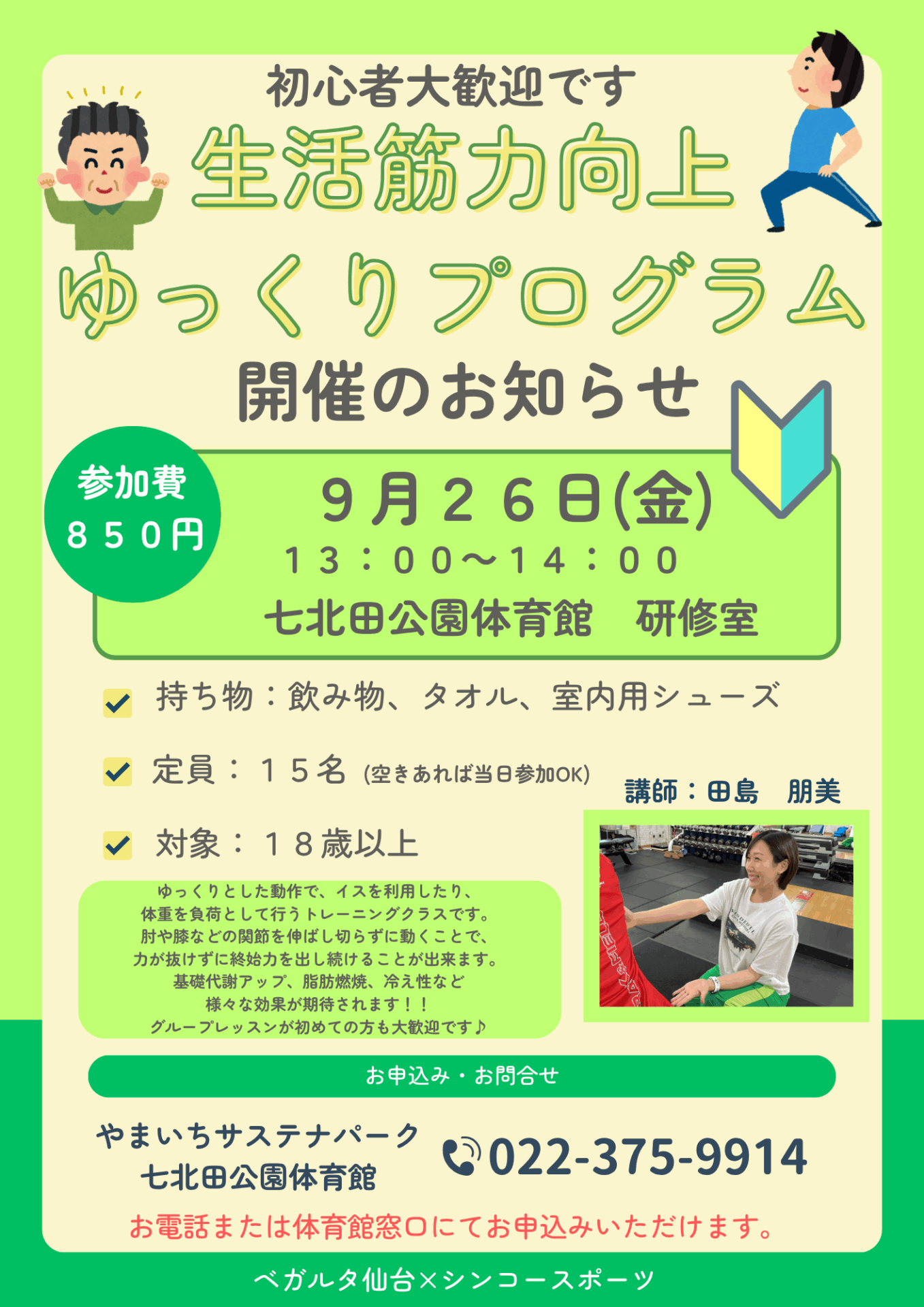 会 場:やまいちサステナパーク七北田公園体育館 研修室