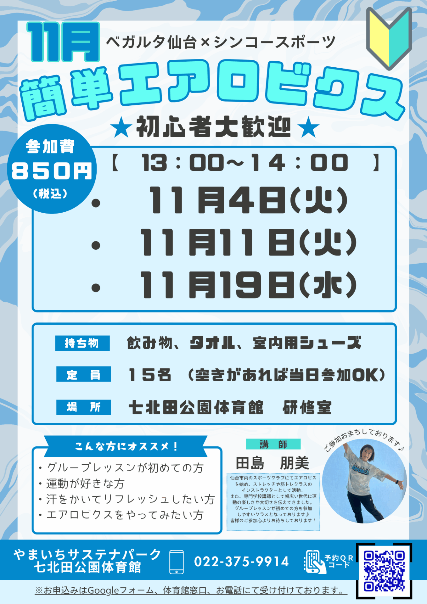 申し込み方法:Googleフォーム、体育館窓口、またはお電話での受け付けとなります。