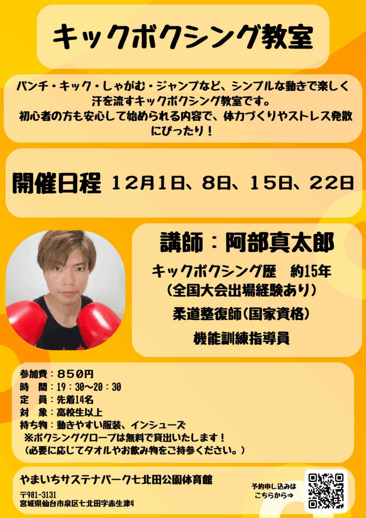 持ち物:動きやすい服装、必要に応じてタオルやお飲み物