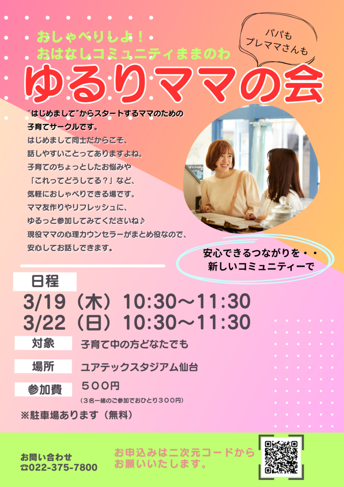 ママ友づくりや気分転換に、どうぞお気軽にご参加ください。