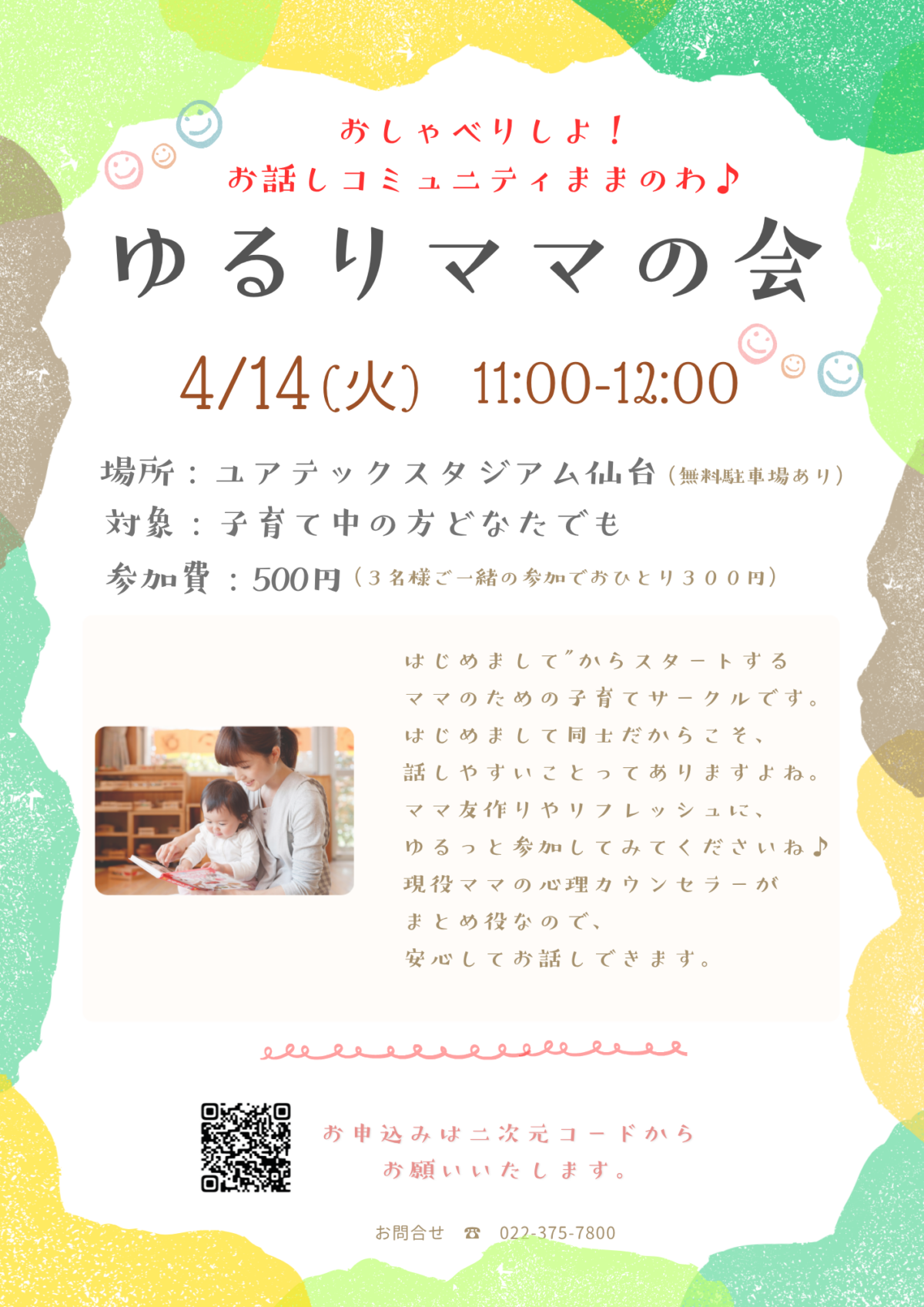 ママ友づくりや気分転換に、どうぞお気軽にご参加ください。