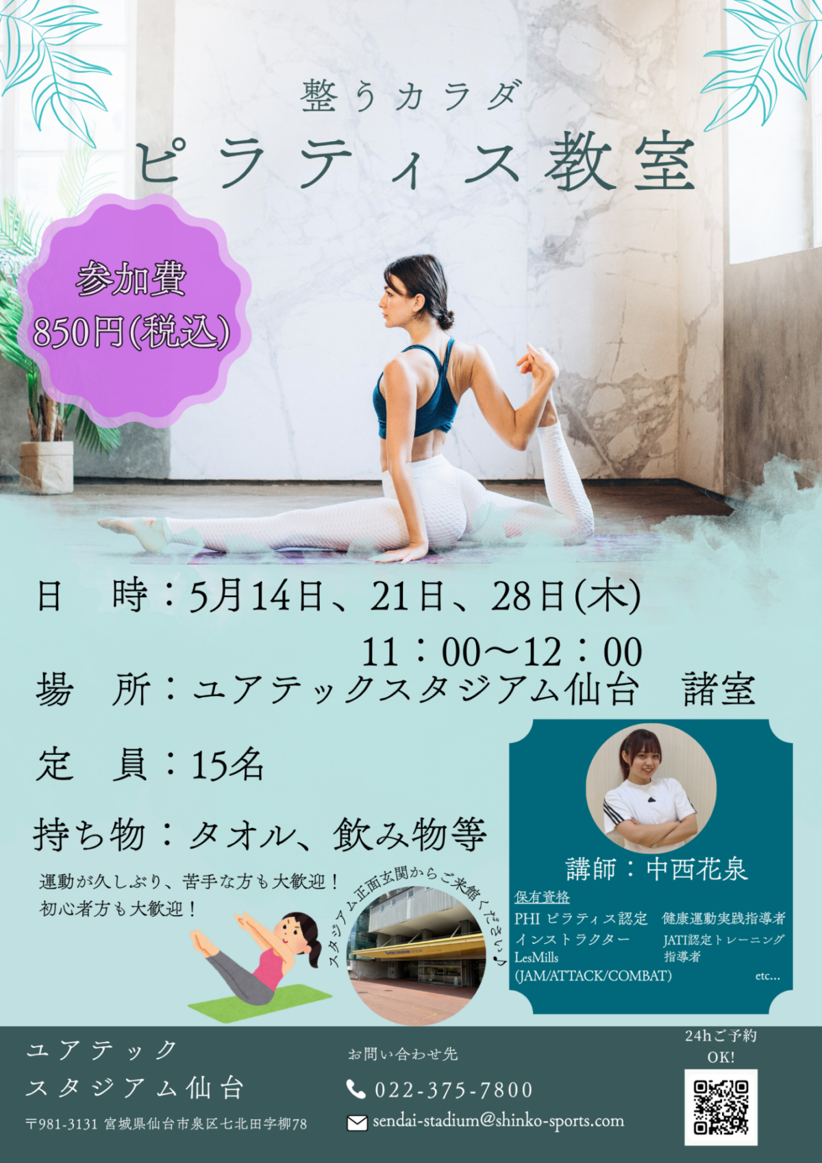 ピラティス教室申込はこちらから!!!
