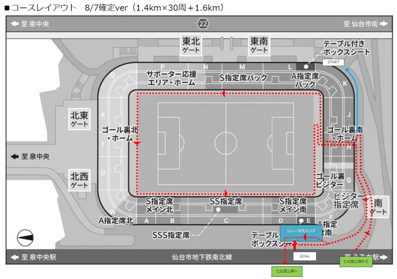ベガルタ仙台が代表企業を務める「仙台泉 SPORTS PARK CONSORTIUM」では、ベガルタ仙台のホームスタジアムである「ユアテックスタジアム仙台」と隣接する「やまいちサステナパーク七北田公園」にて初となるリレーマラソン大会を開催します。